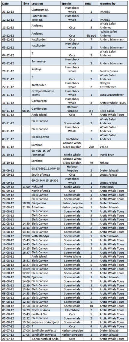 A Public Sighting Network for Whales, Dolphins and Porpoises