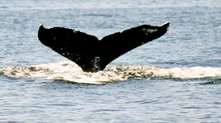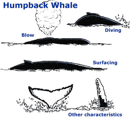 Humpbacks usually lift their flukes before a deep dive. The flukes have a distinct pattern on the underside, which varies from almost white with black markings, to almost black with white markings.