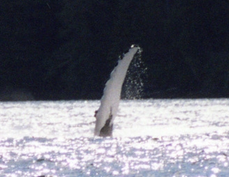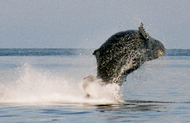 The humpback whale seems happy to perform: it lifts its head out of the water, waves its long massive flippers, splashes its tail, rolls over in the water, and more than anything else, leaps out of the water.